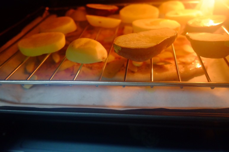 감자고구마가 있어서 오븐에 먼저 익혀줬어요.